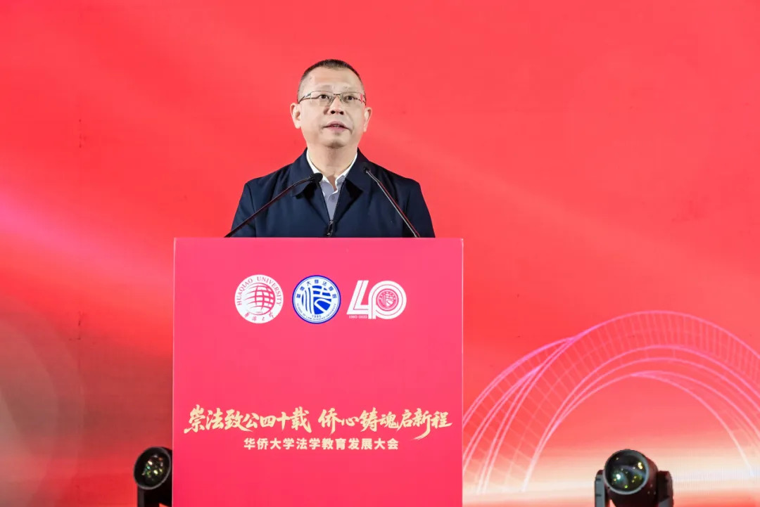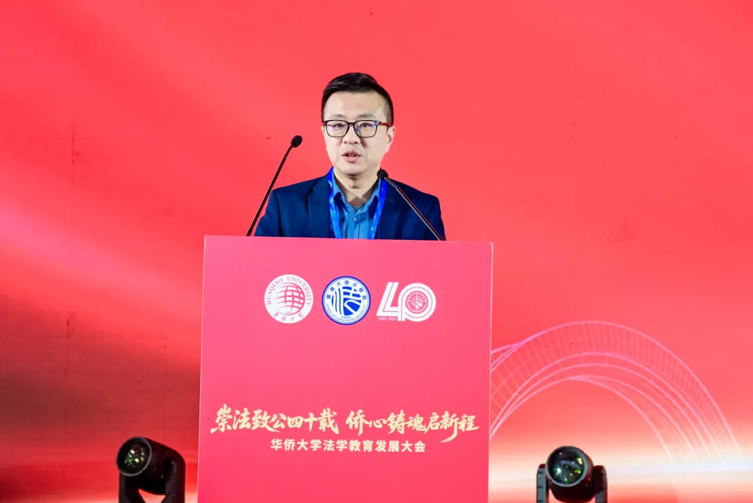 法学院院长刘超回顾了学院40年来在人才培养、学科建设、梯队建设、理论研究、社会服务等方面取得的成就。他认为,法学院发展的核心特色在于四个“始终坚持”:始终坚持正确政治方向、始终坚持服务国家法治战略与回应侨胞需求、始终坚持融合立德树人与特色育人、始终坚持统筹理论研究与服务实践。刘超院长还提出法学院未来十年的“2035发展模式”:构建“2”大赋能机制,力争实现两个“0”距离,完成“3”大突破,打造“5”个品牌项目。他表示,学院将坚持德才并育、为侨服务的办学理念,为建设中国式法治现代化、服务侨胞权益法治保障以及推动中华法治文化的海外传播贡献更大力量。
