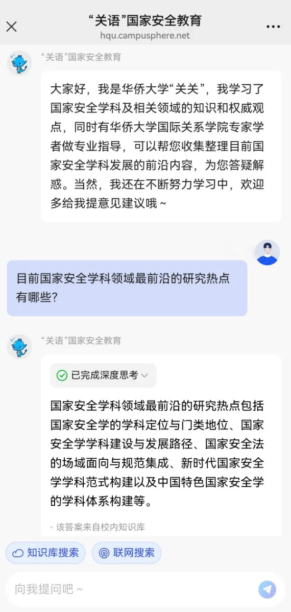 华侨大学国家安全学学科团队开发的“关关”智能体