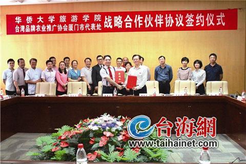导报讯 (记者 林静娴 文/图)昨日下午,华侨大学旅游学院与台湾品牌农业推广协会海西分会的战略合作协议签约仪式,在华侨大学厦门校区举行。双方决定就两岸“大农业、大旅游、大健康”等领域开展合作,结成深度战略合作伙伴关系。