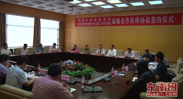 东南网5月9日讯(本网记者 郑王恺)8日下午,台湾品牌农业推广协会海西分会与华侨大学旅游学院签署《战略合作协议》,着力建设全面合作伙伴关系。台湾品牌农业推广协会海西分会会长许景云、华侨大学旅游院院长黄远水代表双方签署协议。