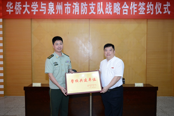 为响应国家“产学研相结合”号召,在理论研究、技术开发、学生社会实践、消防知识宣传普及、消防官兵能力素质培训提升等方面开展深入合作,5月5日,泉州市消防支队与华侨大学隆重举行战略合作签约仪式。泉州支队施艺伟政委、华侨大学彭霈副校长等领导出席签约仪式。