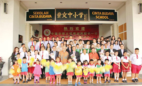 中国华大贾益民校长一行细心深入地了解崇文中小学及幼儿园的发展。对苏用发、黄两承、杜保国、黄世平及众多热心教育事业的崇文校友的努力和无私付出深表钦佩,并重申华侨大学愿意为崇文的毕业生提供华文教育奖学金的方式,到华侨大学修读本科,在适当时间自费派来资深教师,为崇文培训和提高师资人才。在力所能及的范围内,提供专业人员,协助编写适合印尼国情的中小学汉语教科书,给崇文提供智慧教学器材,并在夏令营及冬令营活动方面和崇文保持长期的合作。