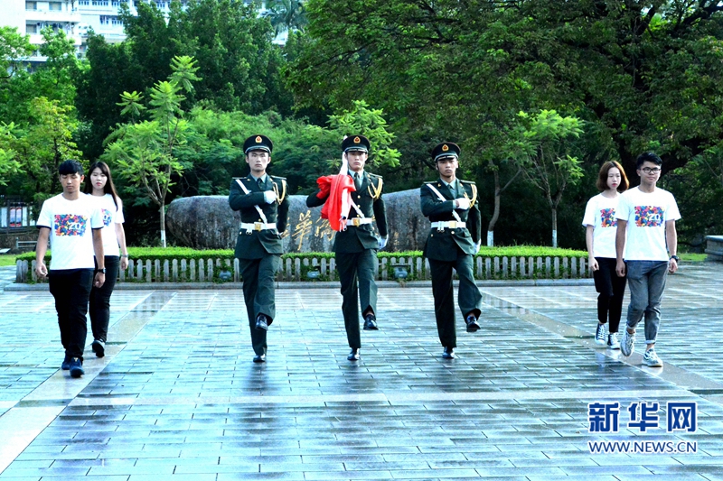 新华网福州7月1日电(王雄)今天是香港回归20周年纪念日,华侨大学香港学生自发组织前往泉州校区廖承志广场进行升国旗仪式,庆祝香港回归祖国20周年。