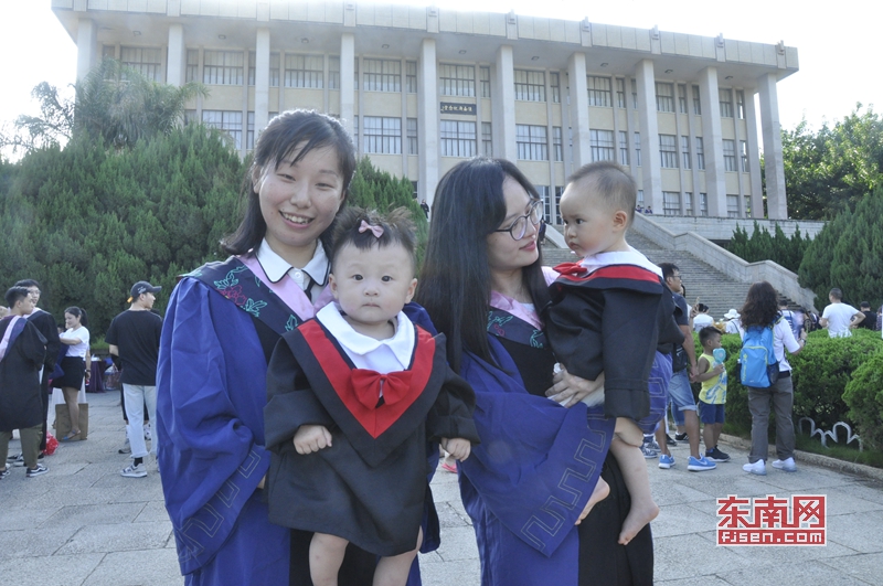 硕士毕业生带着孩子参加毕业典礼。
