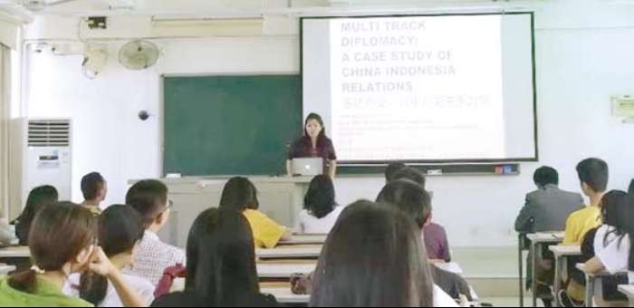 印尼大学国际关系学院讲师林优娜博士(Jona Widhagdo Putri)在讲课