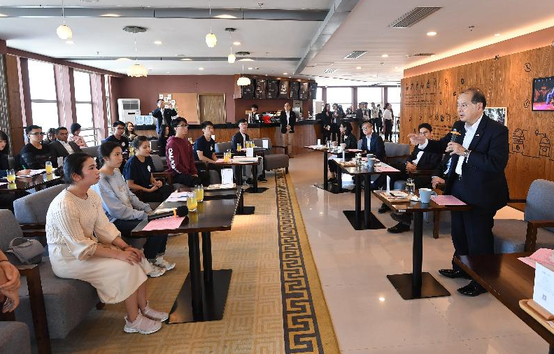 张建宗今日到访华侨大学厦门校区,并与在该校就读的香港学生交流。(政府新闻处)
