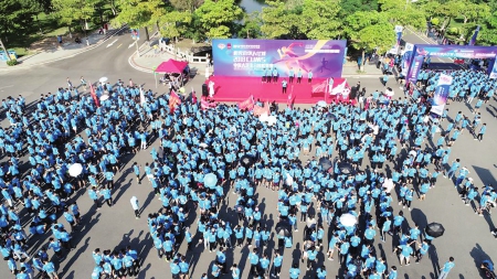 下午两点半,随着发令枪响,比赛正式拉开大幕。一群身着赛事统一蓝色T恤的“小蓝人”汇成一道蓝色河流,释放激情与活力。十二月的厦门温暖如春,选手们的热情更是让比赛现场进一步加速升温,参赛选手在你追我赶中享受着校园马拉松的乐趣。
