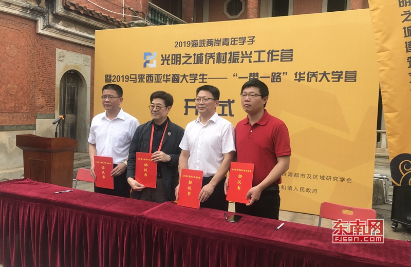 5月16日上午,2019海峡两岸青年学子光明之城侨村振兴工作营暨2019马来西亚华裔大学生——“一带一路”华侨大学营开幕式在永和镇永和村钱仓举行。来自台北市立大学、台北科技大学、香港中文大学、马来西亚拉曼大学、华侨大学等10所高校的师生代表,以及相关领导出席活动开幕式。