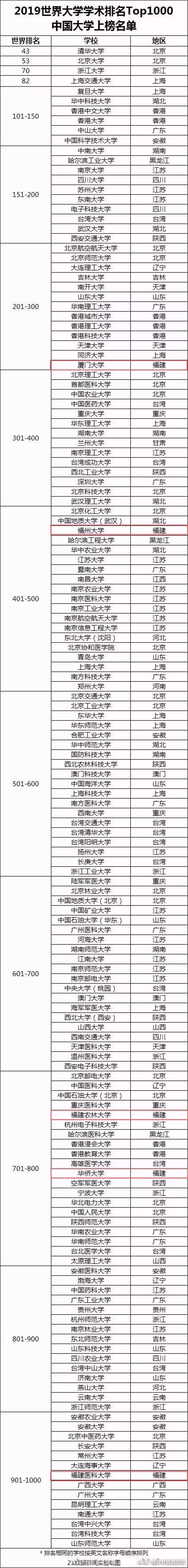 海峡教育报讯 近日,世界权威大学排行榜之一的“2019软科世界大学学术排名”(简称ARWU)正式公布,榜单列出了全球领先的1000所研究型大学。