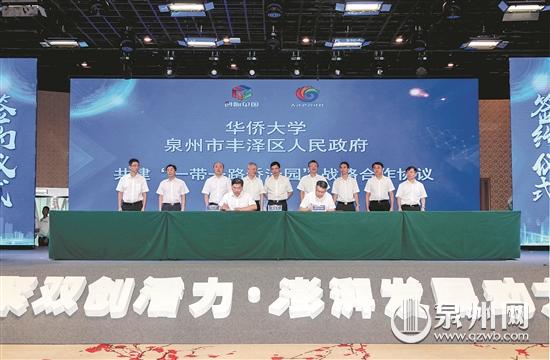 活动当天共签订五项协议,图为丰泽区政府与华侨大学签订共建“一带一路侨泽园”战略合作协议。