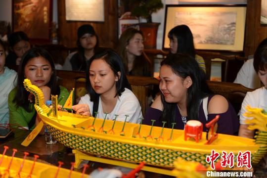 华侨大学港澳台侨新生代表了解“扒龙船”历史与制作工艺。 张为健 摄