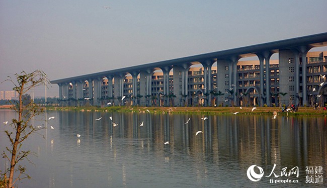 “将所有进入校园的水(雨水、自来水、洪水等),全部通过功能湿地系统,以大气蒸发、回渗地下、流入区域湿地三种途径回归大自然,进而达到了两个循环:一是自来水—污水—中水这样一个节水型小循环;另一个是所有的淡水资源,雨水、自来水、洪水都进入功能湿地,回归生态,这是一个生态型大循环,很好地实现了雨季不旱涝,旱季不缺水的目标。”华侨大学厦门校区有关负责人介绍说。