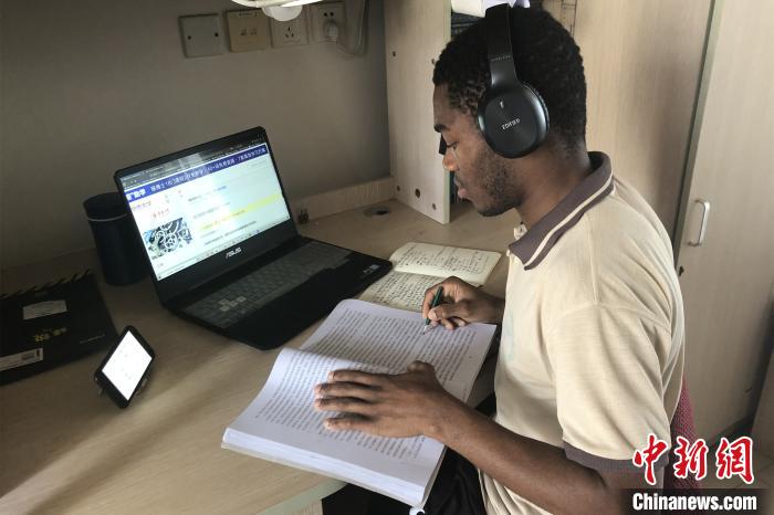 中新网泉州2月27日电 (吴江辉 孙虹)2月27日上午,华侨大学土木工程学院安哥拉留学生比特坐在宿舍书桌前,对着电脑,准备开始新一天的“线上学习”。
