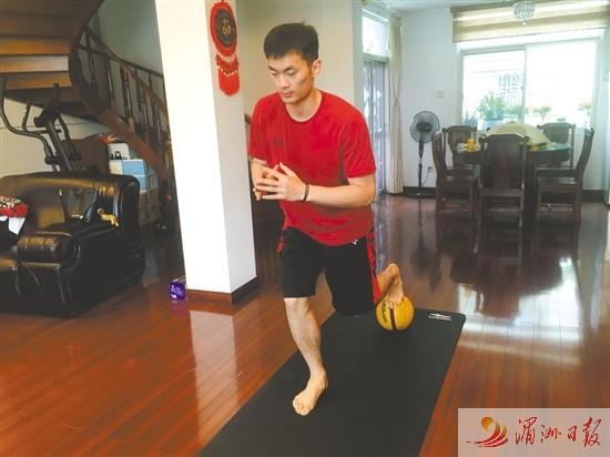 郑毅在家进行体能训练。