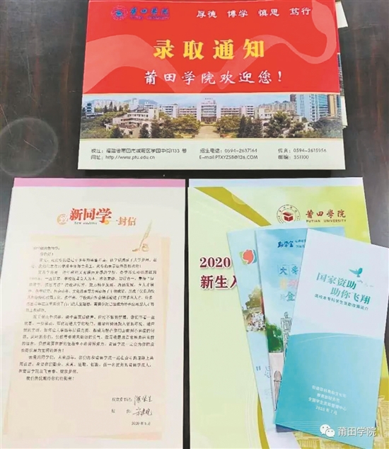 莆田学院2020级新生录取通知书