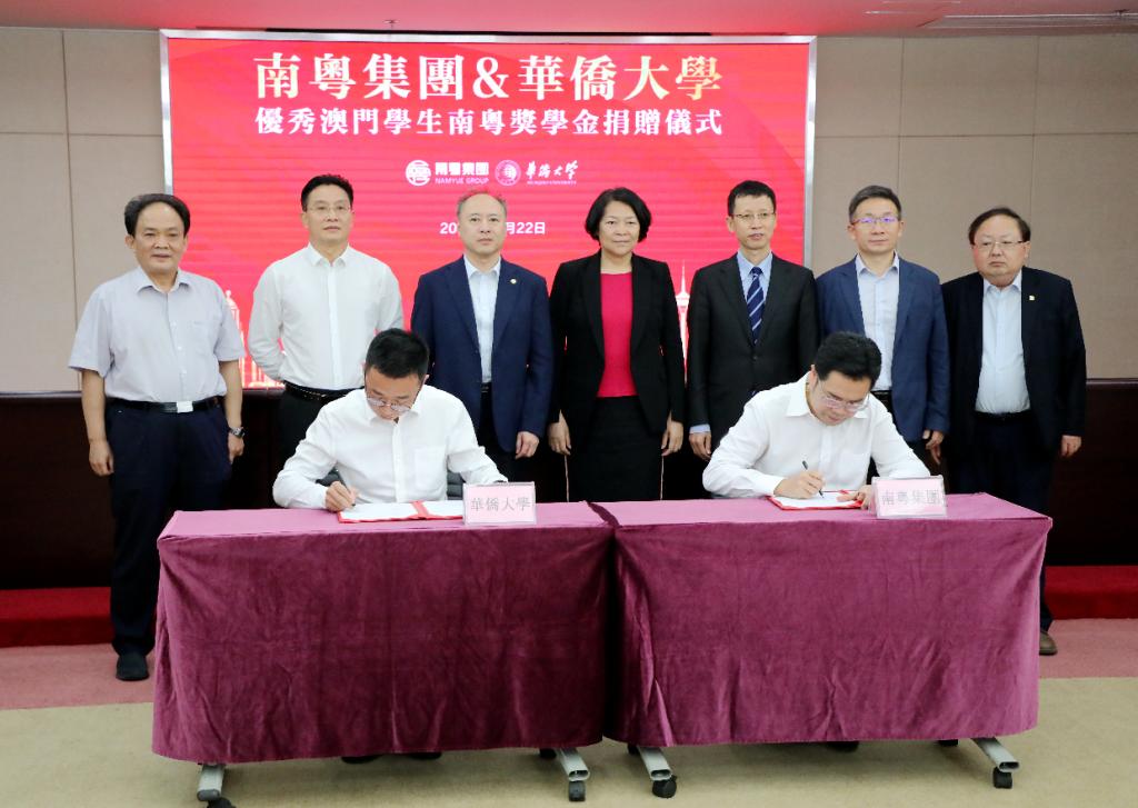 为推动澳门青年成长与人才培养,助力建设湾区人才高地,在福建泉州华侨大学建校60周年之际,南粤集团向校方捐赠200万元人民币设立“优秀澳门学生南粤奖学金”,为华侨大学澳门学子实践创新和融入湾区发展提供支持。仪式上,在全体领导嘉宾的共同见证下,南粤集团与华侨大学双方代表签署了捐赠协议,南粤集团董事李育良代表南粤集团向华侨大学副校长曾路赠送捐赠支票。