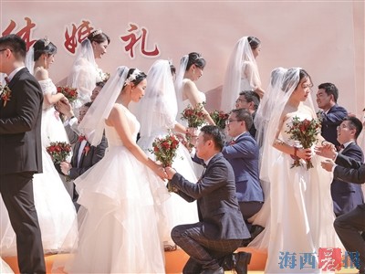 晨报讯(记者 宗琴 通讯员 孟祥龙)橙白相间的花束、白椅、绿树,将华园点缀成一幅浪漫的画卷……10月31日,在华侨大学60周岁生日之际,40对华大校友在华侨大学厦门校区举办了一场浪漫甜蜜的集体婚礼。