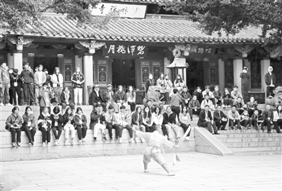 在泉州南少林寺,境外新生们了解了南少林的禅武文化,欣赏了著名的南少林武术表演,并了解了以“五南”(南音、南戏、南拳、南建筑、南派工艺)为代表的优秀传统闽南文化、海丝文化。