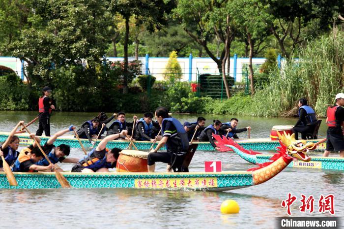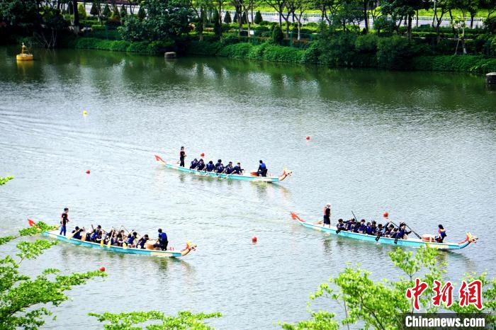 中新网厦门5月29日电 (杨伏山 华讯)端午节来临之际,2022年华侨大学“华大杯”龙舟挑战赛5月29日在华大厦门校区举行,来自12个学院近200名境内外学子龙舟竞渡,体验中华龙舟文化。