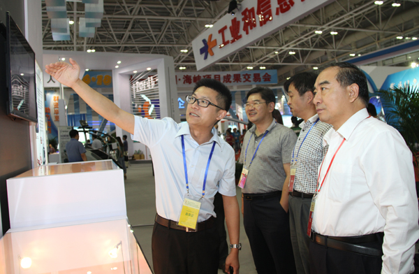 在工业和信息化成果展区,贾益民校长认真听取我校工业设计产品介绍