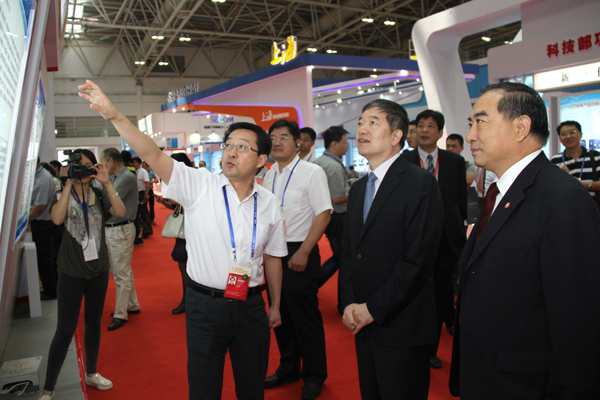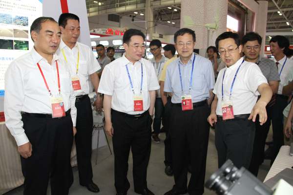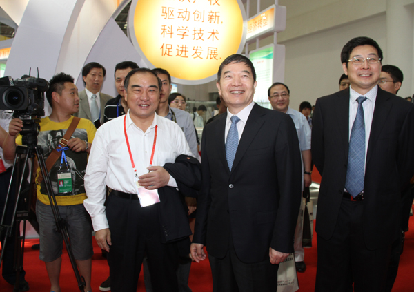 福建省政协副主席薛卫民、教育部科技发展中心副主任李建聪 在校领导贾益民、吴季怀、徐西鹏的陪同下参观我校展区