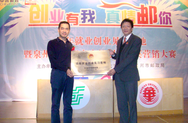 会上,校团委副书记陈世卿和泉州市邮政局签署了《青年就业创业见习基地合同》,并代表福建团省委为泉州市邮政局授牌。