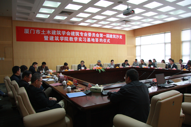 厦门市土木建筑学会建筑专业委员会第一届建筑沙龙暨建筑学院教学实习基地签约仪式昨日下午在华侨大学厦门校区王源兴国际会议中心举行。厦门市建设局副局长、厦门市土木建筑学会理事长林树枝,厦门市规划局副局长、厦门市土木建筑学会建筑专业委员会副主任吴振志,厦门市建设局科技处处长、厦门市厦门市土木建筑学会秘书长何庆丰等领导、专家学者出席。