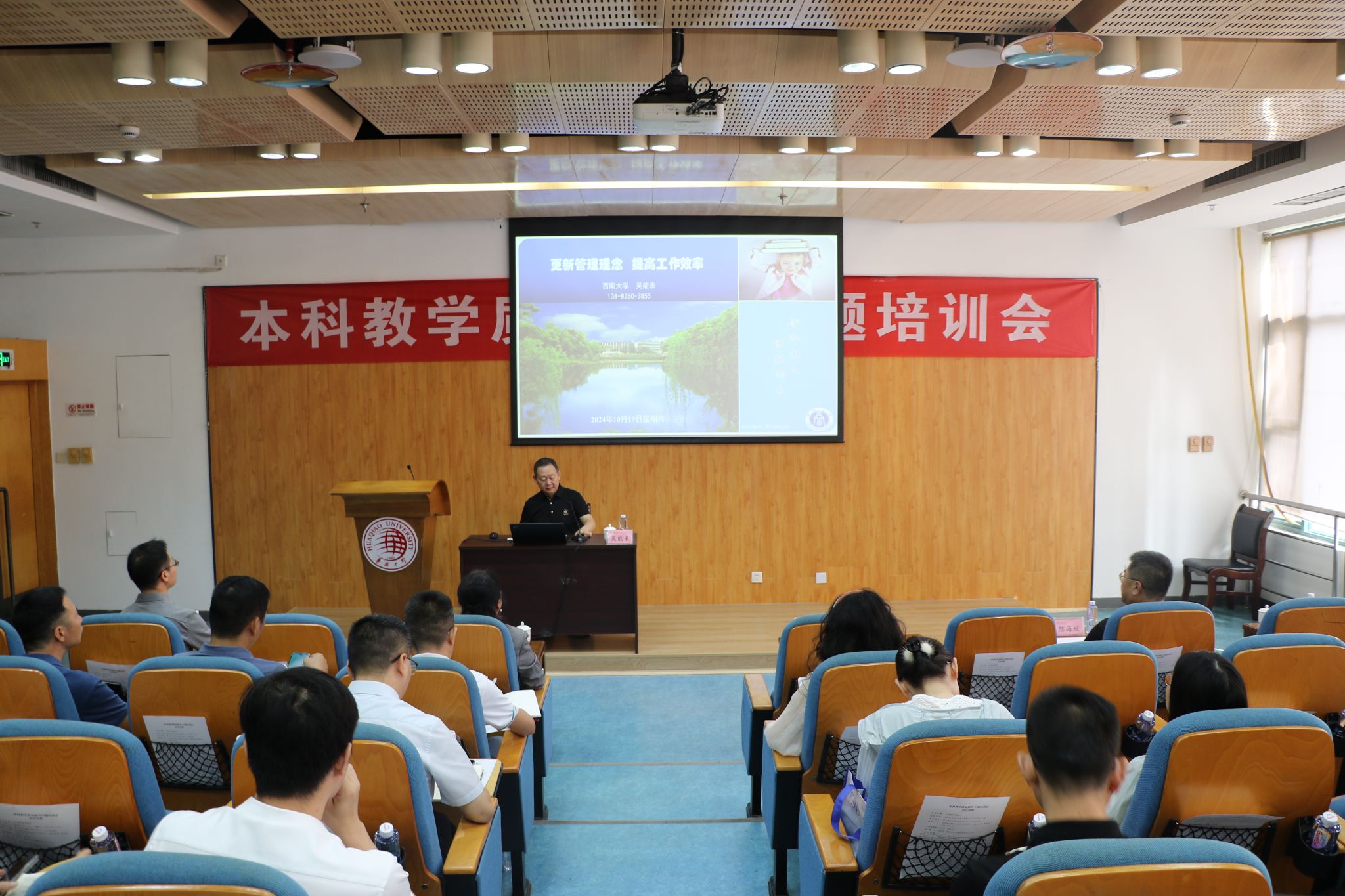 三场讲座依次展开。第一场讲座以“更新教育理念,提升管理效率”为题,由西南大学教授吴能表主讲。他深入剖析了当前高等教育发展的新趋势,提出了适应新时代要求的教育理念和管理策略,并分享了西南大学的教学管理经验,为参会人员提供了宝贵的思路和方法。