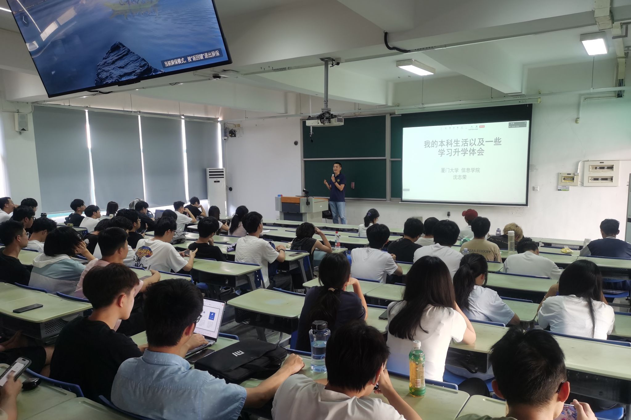 职业规划指导环节,由任职于福建国科信息科技有限公司的曹洋校友主讲。他阐释了职业规划的重要性并为同学们提供了实用方法指导,此外还开展了分班互动的职业规划主题活动。