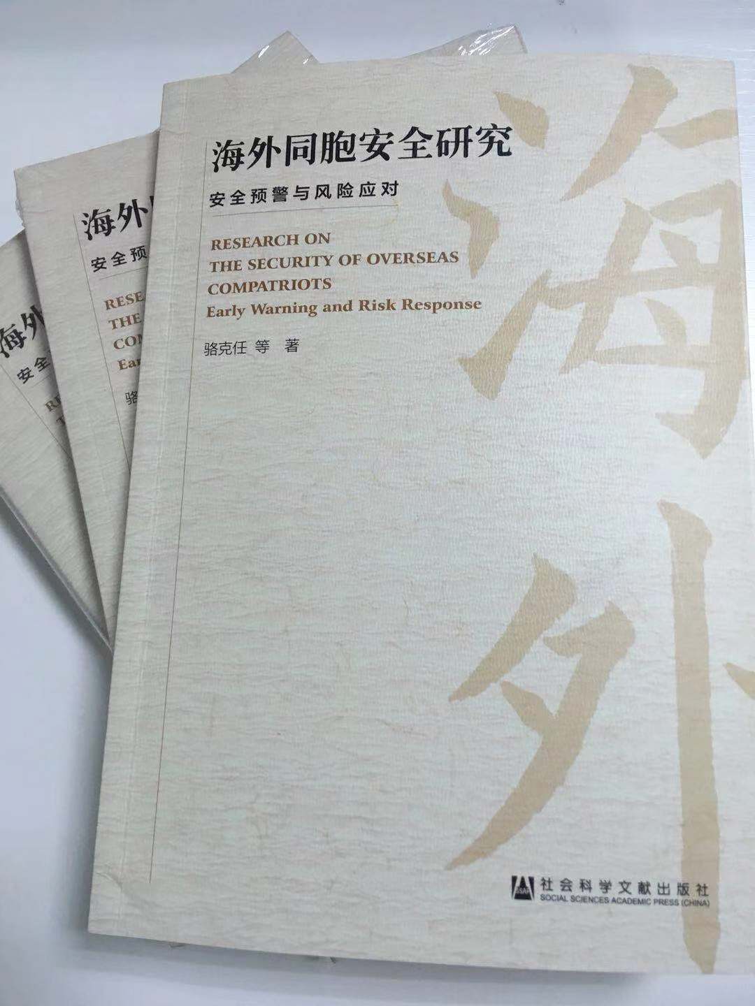 我校国家社会科学基金重大项目“海外华侨生存安全预警与救护机制研究”2016年11月经全国哲学社会科学规划办公室审核按期结项,近日,该项目首席专家骆克任教授等的相关专著《海外同胞安全研究——安全预警与风险应对》由社会科学文献出版社出版。