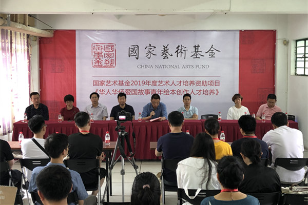 国家艺术基金2019年度艺术人才培养资助项目《华人华侨爱国故事青年绘本创作人才培养》集中培训开班仪式,5月20日上午在我校专业培训教室举行。来自全国各地30名经过严格选拔的青年绘本创作学员,美术学院相关专业教师、研究生及本科生到场参加。