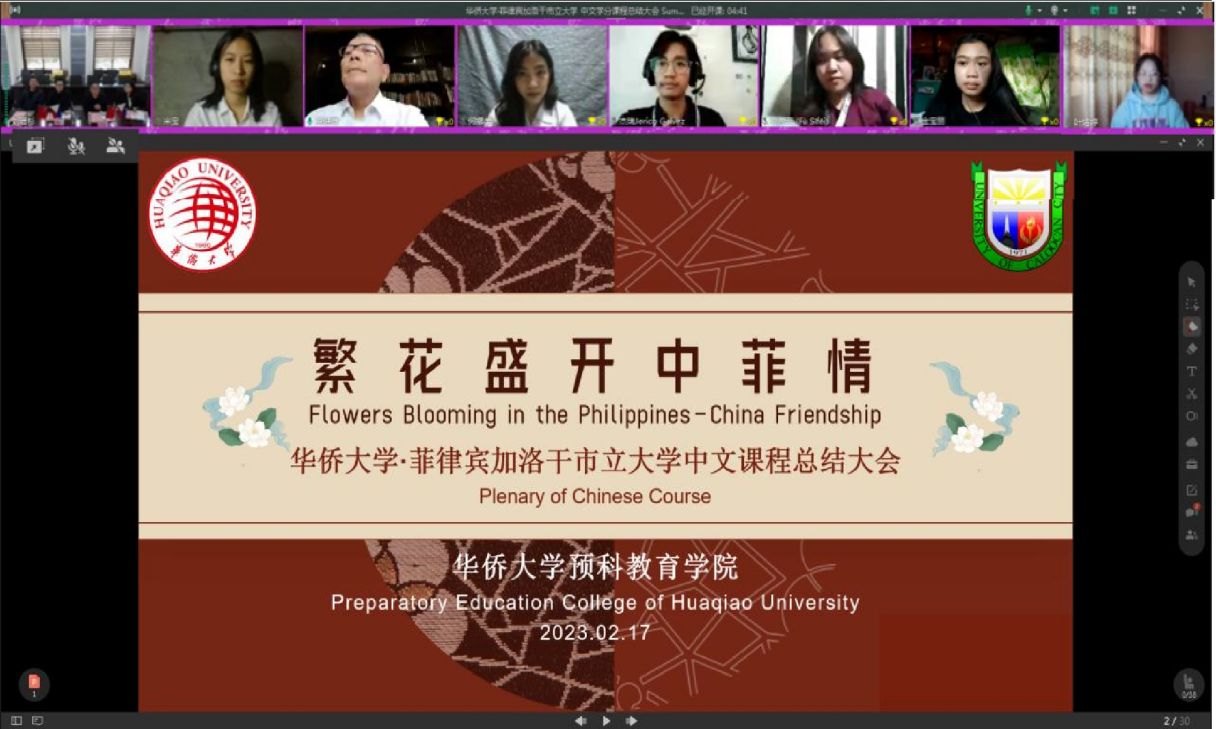 2月17日,我校举行了“华侨大学·菲律宾加洛干市立大学中文学分课程项目”总结表彰大会,以“繁花盛开中菲情”为主题,通过“我与中文的美丽邂逅”“菲华同心·我们在一起”等多个精彩视频回顾了该项目开展以来的教学成果,展示了“中菲特色服装设计大赛”“‘中文·共筑美好未来’征文比赛”等多项比赛获奖作品,并颁发“学习标兵”“文明交流互鉴”等奖项。菲律宾加洛干市立大学代校长Atty. Roderick P. Vera、教育学院院长Ramona A. Prado,加洛干市菲华商会名誉理事长洪健雄,以及菲律宾当地多所学校校长等参加大会。