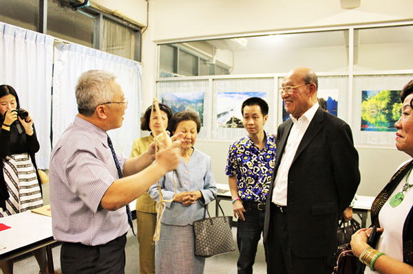 学员们在下课后来到签名区签下中文名并张贴在好运墙上。陈汉士先生及翁雪珍夫人、高惠敏、何韵及书院师生一行来到中国印象文化展,中国印象文化展展区展有各类中国特色物件,其中包括文房四宝、四大名著、指尖上的中国之陀螺、翻绳、竹蜻蜓、灯笼、毽子,《孔子名言录》等,各位驻足停留,观赏把玩。随后是参观“我与oca的2015”展板,展板张贴着东方文化书院孔子课堂2015年全年各大活动照片,其中包括书院院长对课堂工作的支持与鼓励、汉语教师志愿者的风采、更多的是汉语学习者们在汉语这条路上的辛勤跋涉,往日欢声笑语浮现眼前,场面温馨。