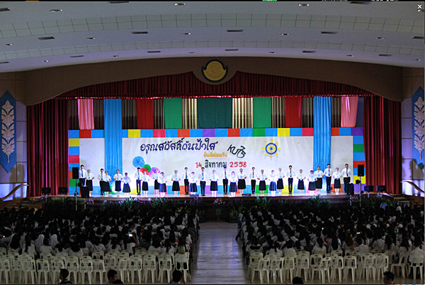 在14日举行的开学典礼上,两名志愿者教师作为教师成员,为学生佩戴校徽。梁叶、莫贵莹还在分校副校长Aanchasa博士安排下,参加了15日举行的色军分校20周年庆典,并拜会了分校领导及老师。