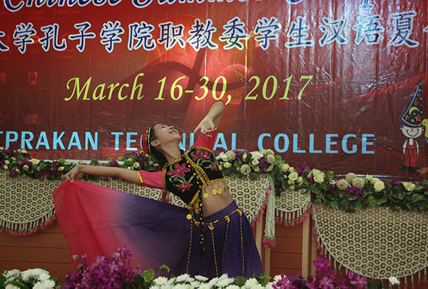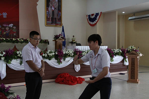 3月17日,由泰国职教委、北榄技术学院、农业大学孔子学院联合主办的汉语夏令营开幕。泰国制革厂公会主席、北榄技术学院校董帕尼·库入温陆坤女士(Ms. Pranee Kuruvelukorn),北榄技术学院校长他韦萨·考通(Mr.Taweesak Kewthong),农大孔院中方院长高惠敏,北榄技术学院副校长及教师,来自泰国中部地区职业学校的50多名夏令营学生及其家长参加开学式。