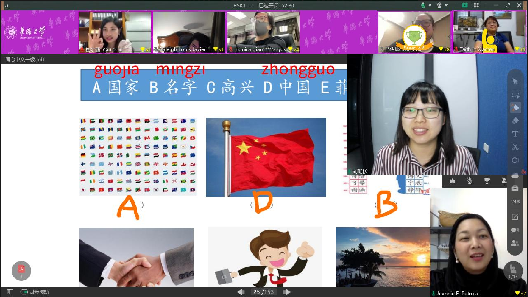 为推进中菲文化交流,由我校和菲律宾驻厦门总领事馆合作举办的菲律宾驻华使节中文学习班近日在线上开班,包括菲律宾驻厦门总领事馆总领事欧莉娜在内的菲律宾驻北京、厦门、上海、重庆、香港和澳门等6地大使馆(领事馆)的25名使节人员参加学习,成为首期学习班的学员。