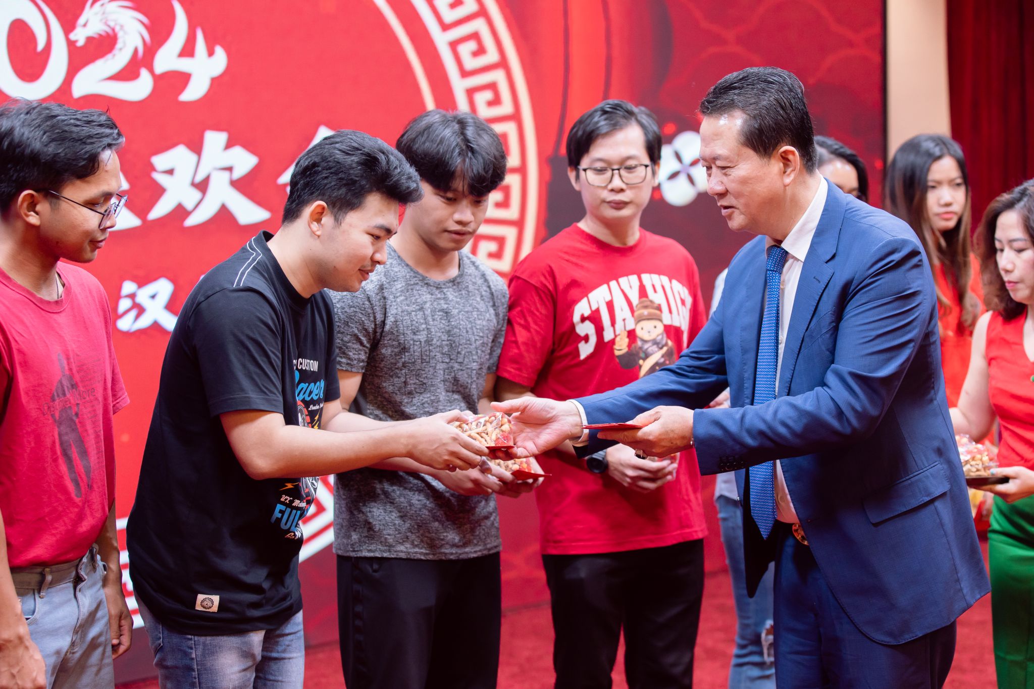 新春到来之际,学苑负责人为师生发放春节红包,传递好运和祝福。缅甸福星孔子课堂的学生代表上台演讲,表达了对中文及中华文化的浓厚兴趣,并感谢学校提供的良好教育平台,还激情演唱祝贺新春来临的歌曲。