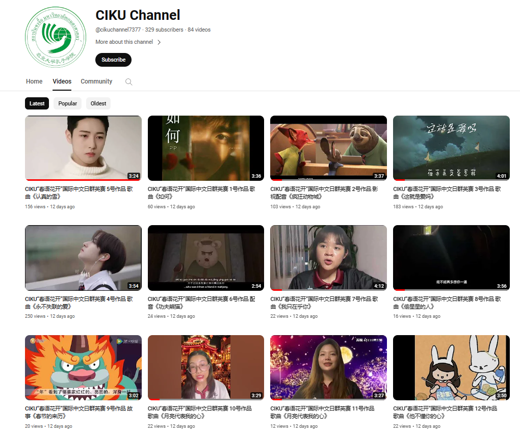 本次活动共征集中文歌曲、配乐诗朗诵、影视配音、中国舞等各类作品19份,其中15份优秀作品被上传至CIKU Facebook,并参与网络人气评选。中文系学生张云和张美的合唱作品《认真的雪》视频点赞量最高,获得“网络人气奖”;两人的另一合唱作品《永不失联的爱》和刘艺芳的影视配音作品《疯狂动物城》获得“网络优秀奖”。