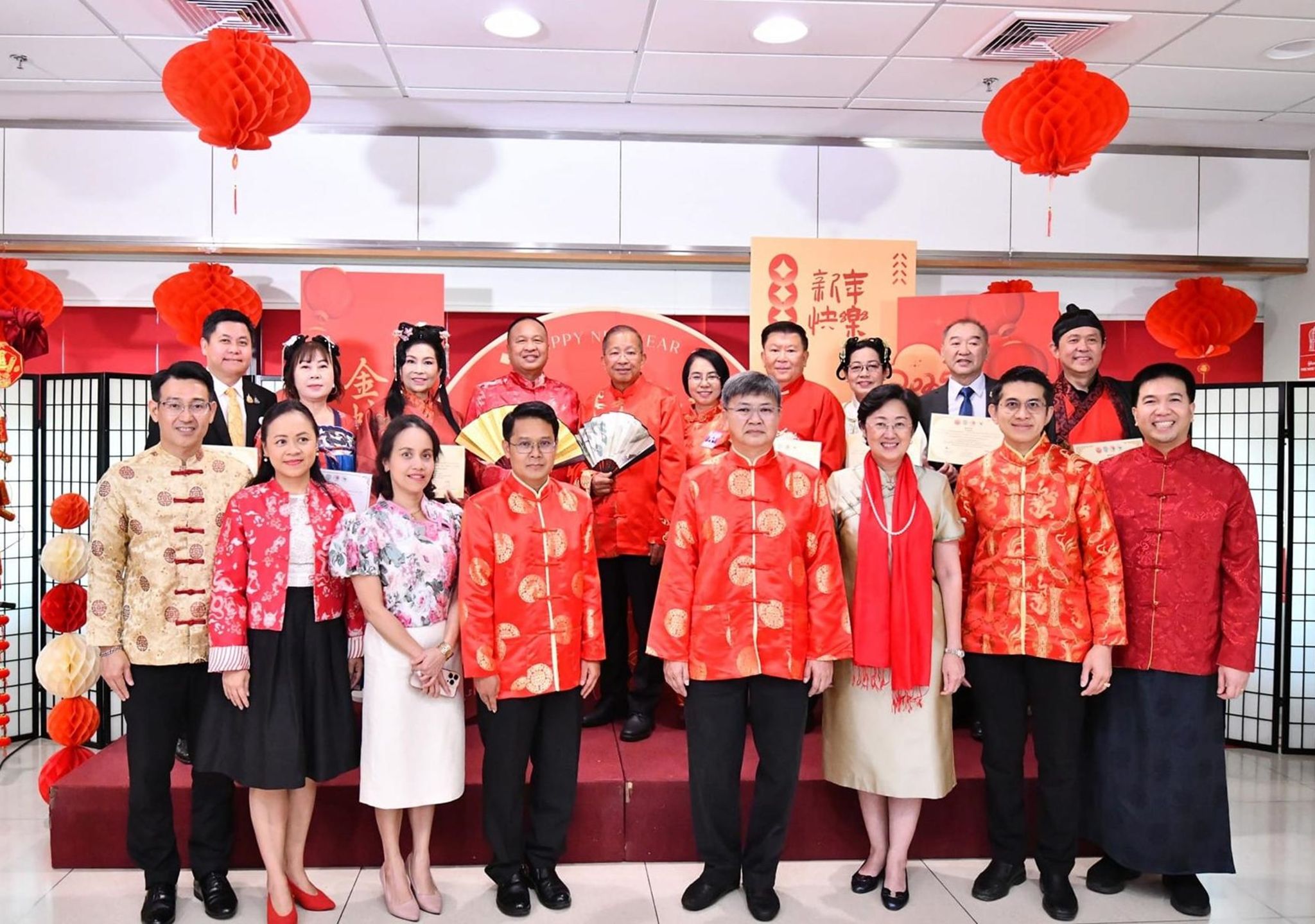 1月23日,泰国农业大学孔子学院与泰国上议院秘书处在泰国国会大厦联合举办第10期上议员汉语培训班结业式暨春节联欢活动。泰国上议院议长蒙昆·苏拉萨贾阁下(H.E. Mongkol Surasajja)、上议院第一副议长江克莱·斯里拉将军(Gen. Kriangkrai Srirak)、秘书处政治与行政管理顾问彭吉·阿伦帕迪萨昆先生(Mr. Pongkit Aroonpukdeesakul)、上议院议员与泰国农业大学孔子学院中泰方院长出席活动。