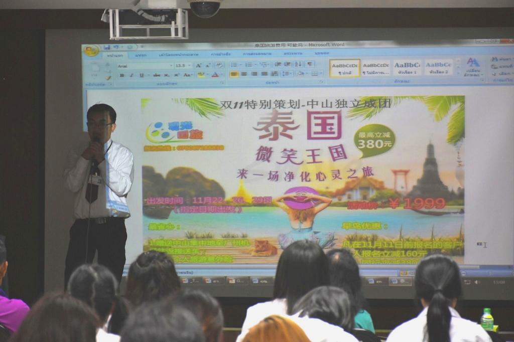 近日,泰国农业大学孔子学院和人文学院联合举办了一场导游就业指导讲座。讲座邀请了有21年丰富经验的中文导游卢炳辉担任嘉宾,吸引了不少人文学院中文系学生和一些对此感兴趣的社会人士。