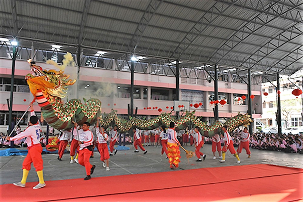 2月12日,泰国农大孔院与泰里拉学校联合举办喜迎新春活动。联欢会将古典与现代完美融合、内容丰富,全方位展示了中国文化的魅力。大型开场舞《狮舞中国年》,一开始就把活动现场的气氛推向了高潮。农大孔院下设BCC孔子课堂志愿者康宇、彭婧怡和黄鹭萍表演的伞舞《青花瓷》,以其柔美动听的音乐、唯美的造型、优雅的身姿赢得了观众的阵阵欢呼。泰国学生表演的《灯笼舞》渲染了红红火火过大年的气氛。《扇子舞》、《中国舞》、《中国小姐比赛》等都在泰国学生和老师的演绎下,呈现出一种全新的风貌,让人们感受到了中国文化正在泰国的土地上生机勃勃的发展。为庆祝新年,泰里拉特地安排最美中国先生、中国小姐评选,身着中国传统服饰的老师和学生盛装角逐,最后四位选手成功胜出。