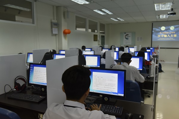 “哒哒……啪……”,阵阵清脆地键盘敲击声从普吉孔子学院语音实验室里传来,汉字输入大赛正在如火如荼地进行。汉字输入比赛分两部分进行,先进行电脑输入比赛,随后是智能手机汉字输入比赛。“参加打字比赛,练习打字速度,我以后跟中国朋友聊天时,他们就不用等我很长时间啦”,参加过两次汉字输入大赛的元恺同学说。