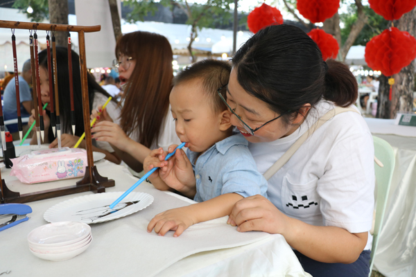 活动现场,孔院为游客们准备了铁观音、八宝茶等多种茶体验。一位游客在孔院展位前坐了很久,体会沁入心脾的茶味,他说:“爸爸妈妈几十年前从潮州回来之后,也带来了一些潮州人的习惯,所以平时在家里也经常喝一些茶,看到有孔院的老师泡茶,我感到很亲切。”
