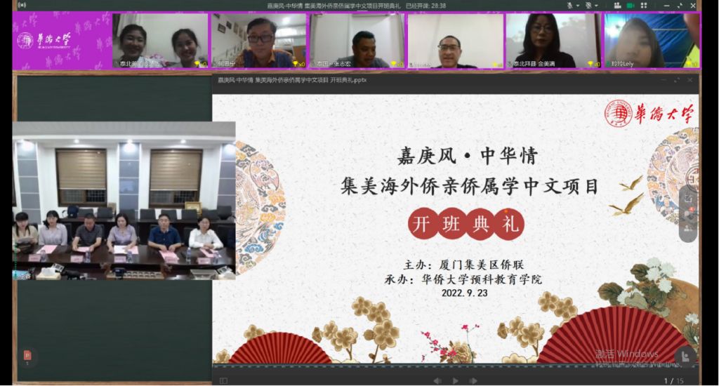 9月23日,由集美区归国华侨联合会主办,我校预科教育学院承办的“2022年嘉庚风·中华情集美海外侨亲侨属学中文项目”开班,来自泰国、缅甸、越南、印度尼西亚、法国等国家的40余名海外华裔学子和当地华文学校的教师代表参加了本次开班典礼。