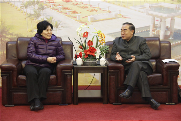 校长贾益民与福建省人大常委会副主任刘群英(左)交谈