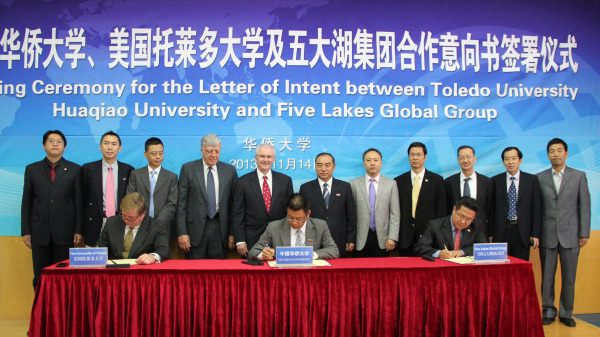 据了解,今年7月8日,郭志新访问我校,就华侨大学与美国五大湖国际集团、托莱多大学三方合作办学进行磋商并达成初步意向。此次签署合作意向书是三方合作的进一步深化和落实。