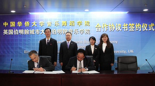 22日上午,我校音乐舞蹈学院与英国伯明翰城市大学伯明翰音乐学院在厦门校区签署合作协议。根据协议,自明年起我校将有5名学生可免学费留学伯明翰音乐学院;伯明翰城市大学认定我校音乐舞蹈学院为伯明翰音乐学院在中国官方大师课授课点及华南片区招生面试地点;伯明翰城市大学每年在我校举办系列音乐大师课。