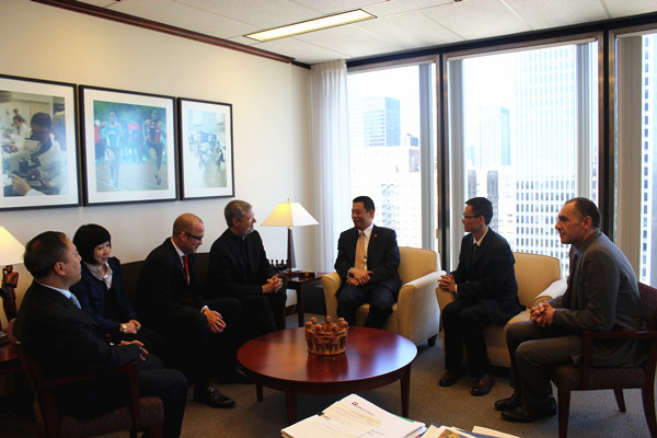 在德保罗大学,访问团受到该校热情接待,与该校校长Dennis H. Holtschneider博士、副校长GinoMario Besana博士、国际项目办公室主任Kari Costello女士、中国事务负责人Patrick Murphy博士以及商学院、计算机及数字媒体学院、教育学院、公共服务学院、现代语言学系的领导与师生进行了广泛的接触与深入交流,并实地参观了商学院、计算机及数字媒体学院、现代语言学系。双方就2+2、1+2+1联合办学,教师交流与培训,学生交流,中文教育与培训等多个项目进行了交流,并达成合作意向。