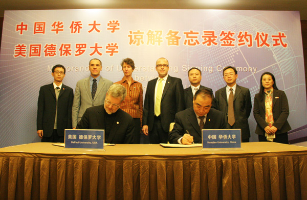 21日上午,华侨大学与美国德保罗大学签署合作备忘录。从明年开始,两校即可进行学生交换和教师互访等合作项目。据称,这是德保罗大学首次与中国的大学建立校际合作关系。