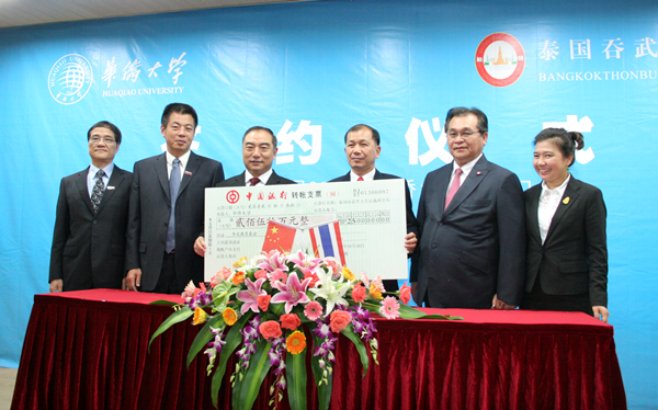 在今年三月签署双方合作协议的基础上,中国华侨大学与泰国吞武里大学今日签署了“合作建设吞武里大学华文学院框架协议”